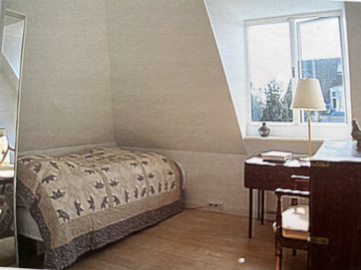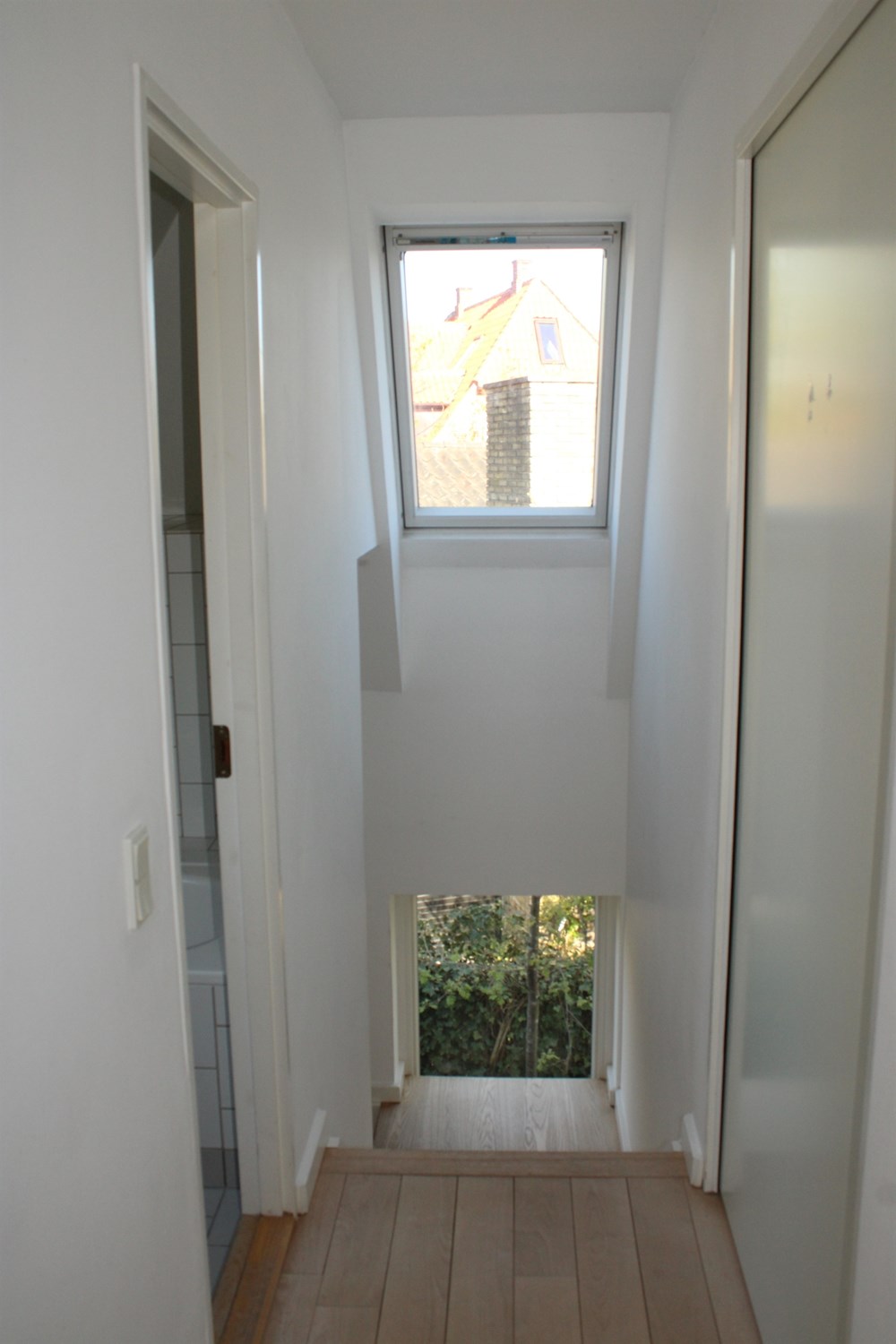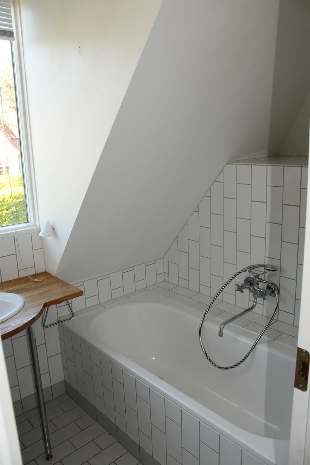 The upper floor contains: Large bedroom with small balcony, a nice bright room and a nice bathroom with bathtub.