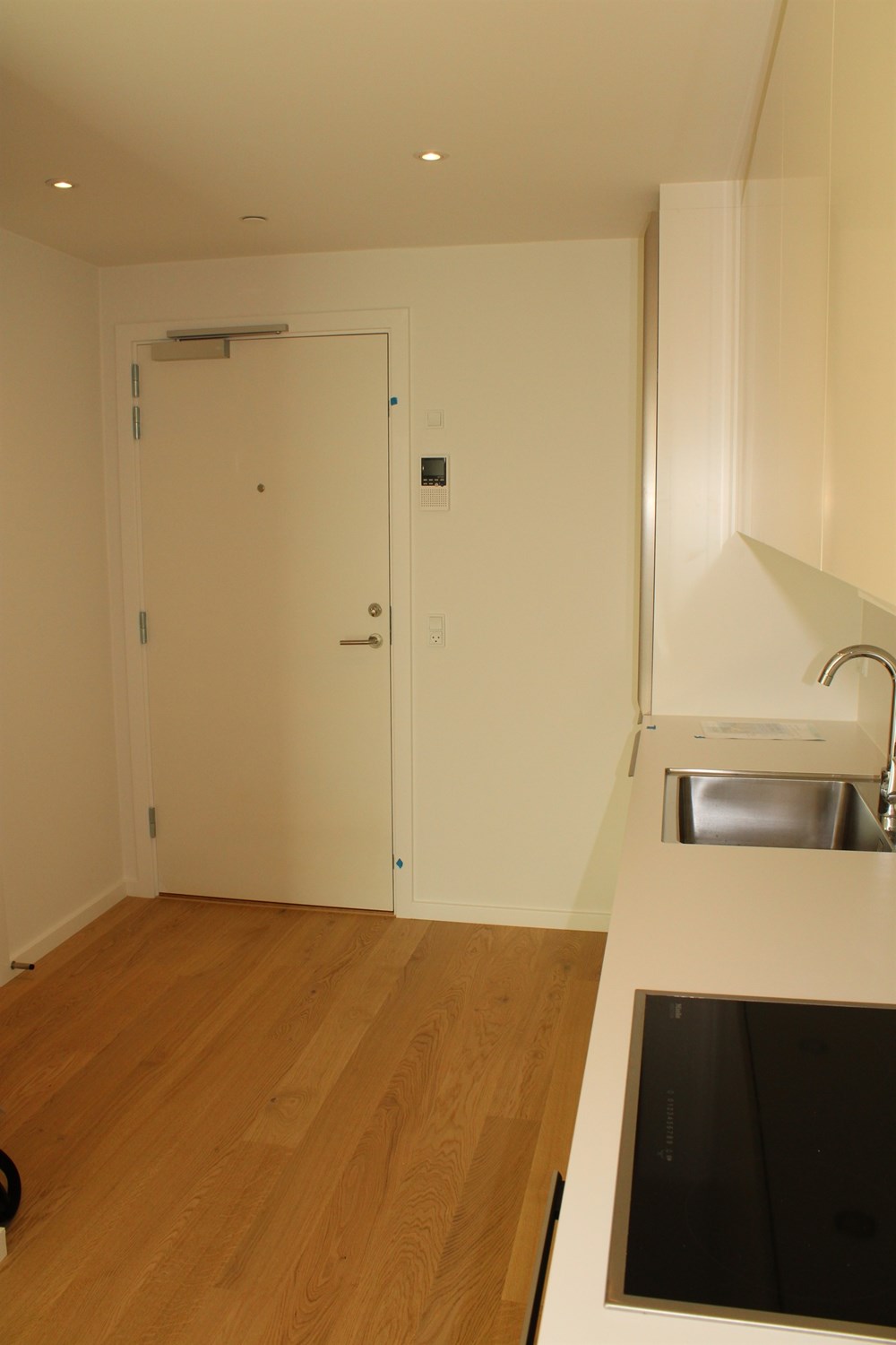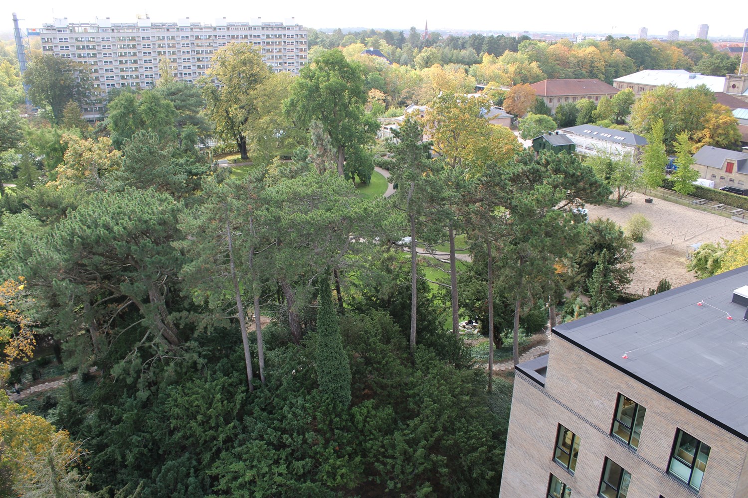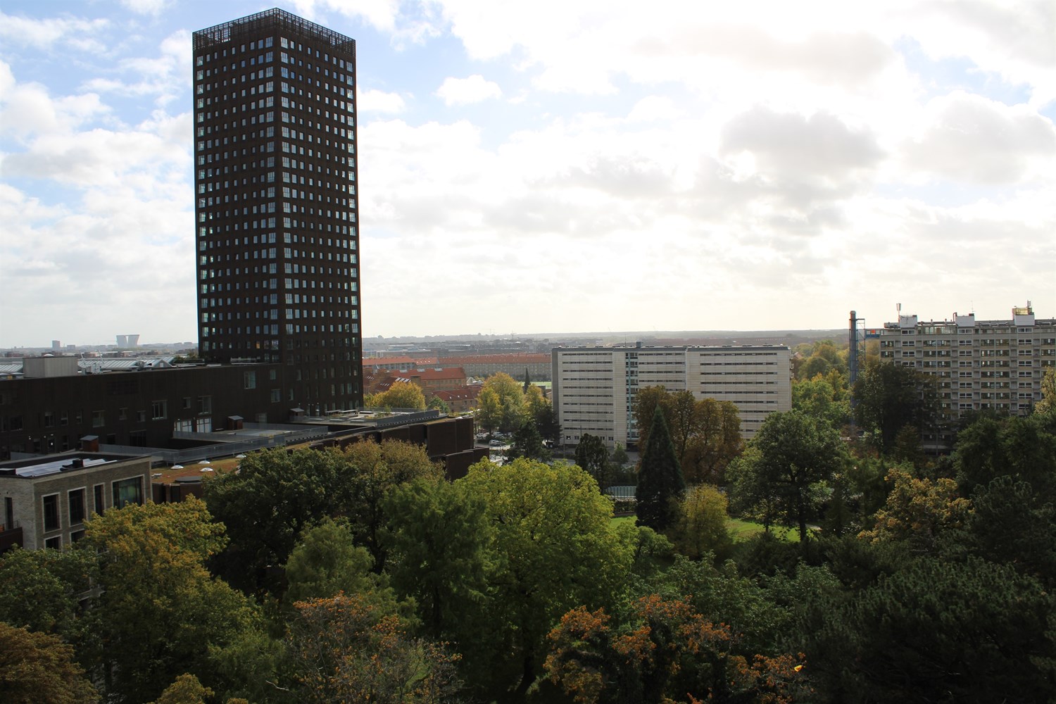 Lejligheden indeholder et fint køkken / stue med fransk altan til den eksotiske H.C. Jacobsens have, og flot udsigt fra 9. etage. Desuden et fint soveværelse med indbygget skab og skydedør til stuen. Badeværelset er i flotte materialer, og har en god størrelse og med vaskemaskine og tumbler i bedste Miele kvalitet.