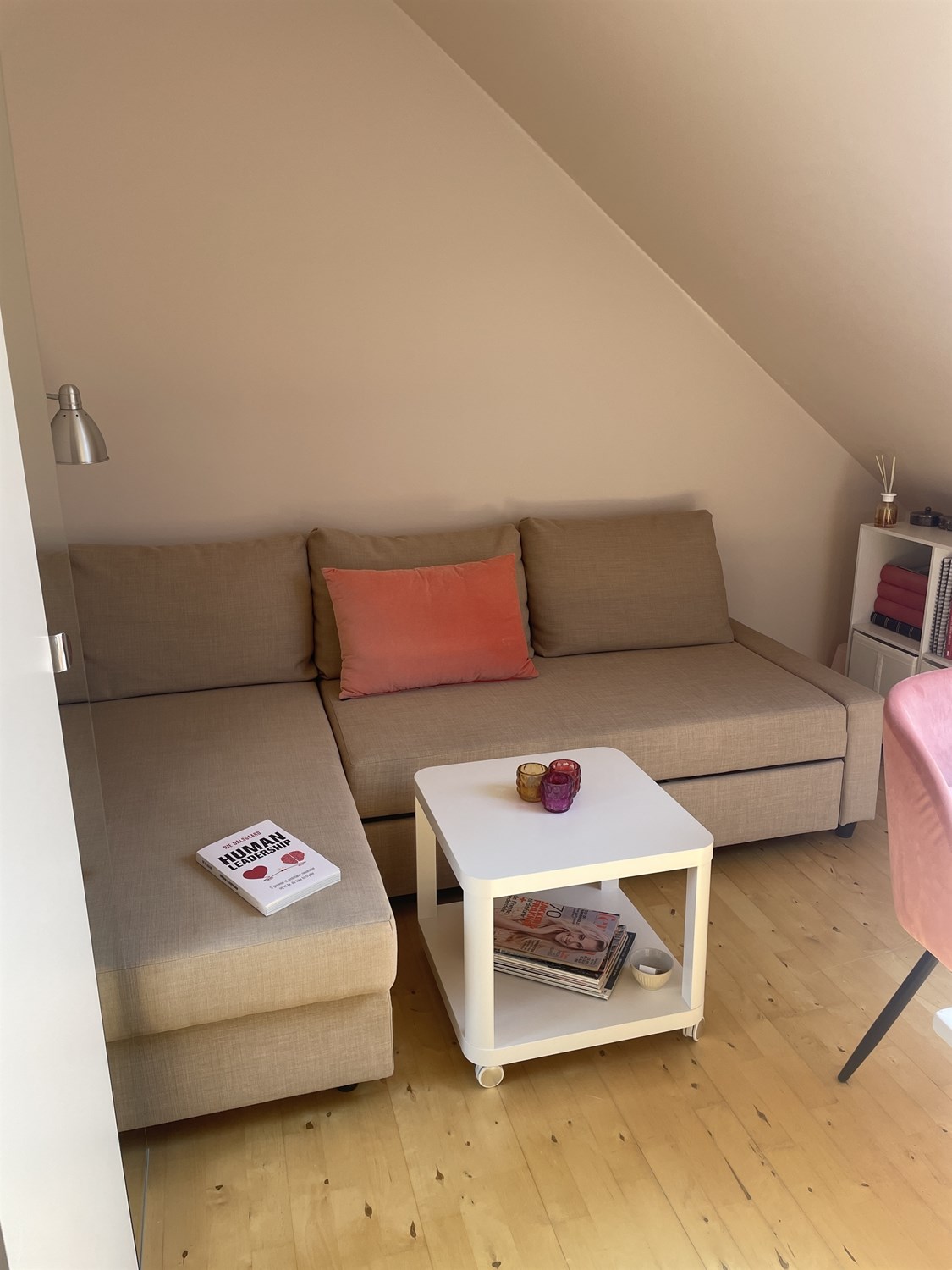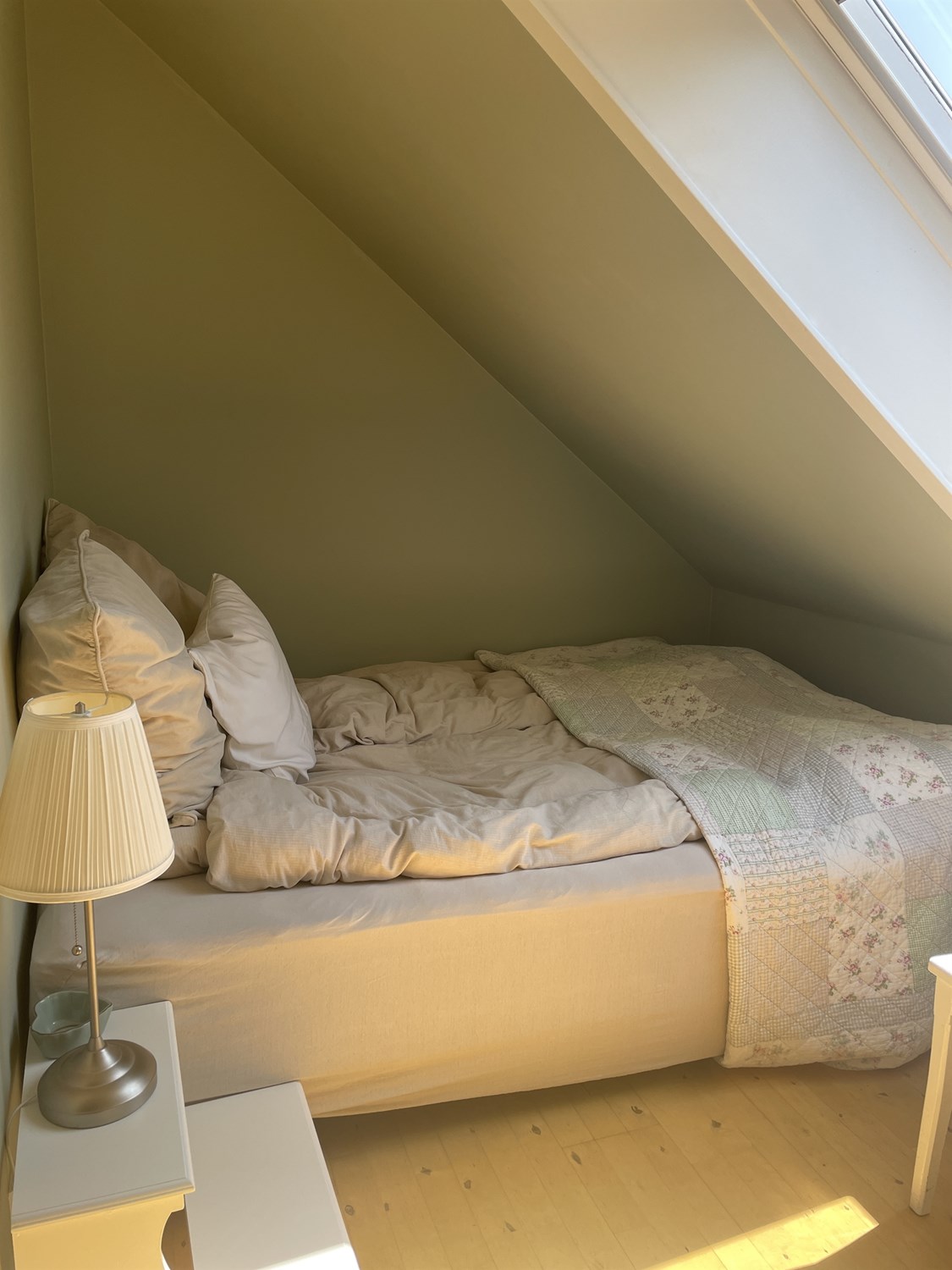 Øverst findes 3 gode værelser, alle med skrå vægge som giver en god hyggelig atmosfære på etagen. Her findes også en hyggelig repos ved toppen af trappen.