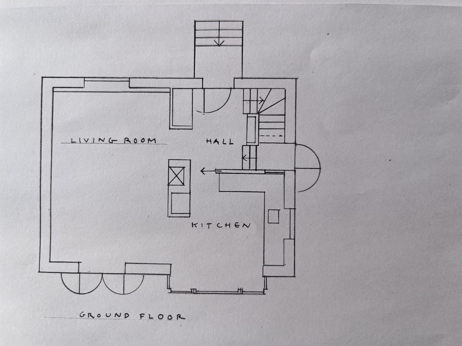 Huset indeholder i stueetagen et hyggeligt køkken, med spiseplads ved den meget lyse karnap mod haven. Fra køkkenet drejer man videre ind i etagens hyggelige stue, som har høje glaspartier, både mod haven og mod vejen, og en flot muret pejs. Fra stuen er der også udgang til den flotte terrasse.